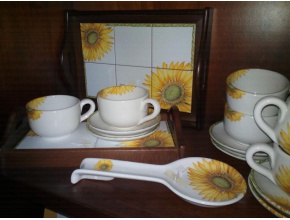 Coppia Vassoi Cornice Legno Collezione Girasole in Ceramica di Castelli composta da :